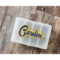 Our personalized cheer bow box is perfect for traveling with your bows. You are able to keep 2 bows in one box without them getting smashed in your cheer backpack. It could also be used to store soccer, softball or any other type of sporting bow.