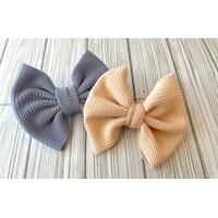 It can fit 1 bow with plenty of space and 2 cheer bows (loops to tails) for a tighter fit. It can also fit 3 tailless bows.