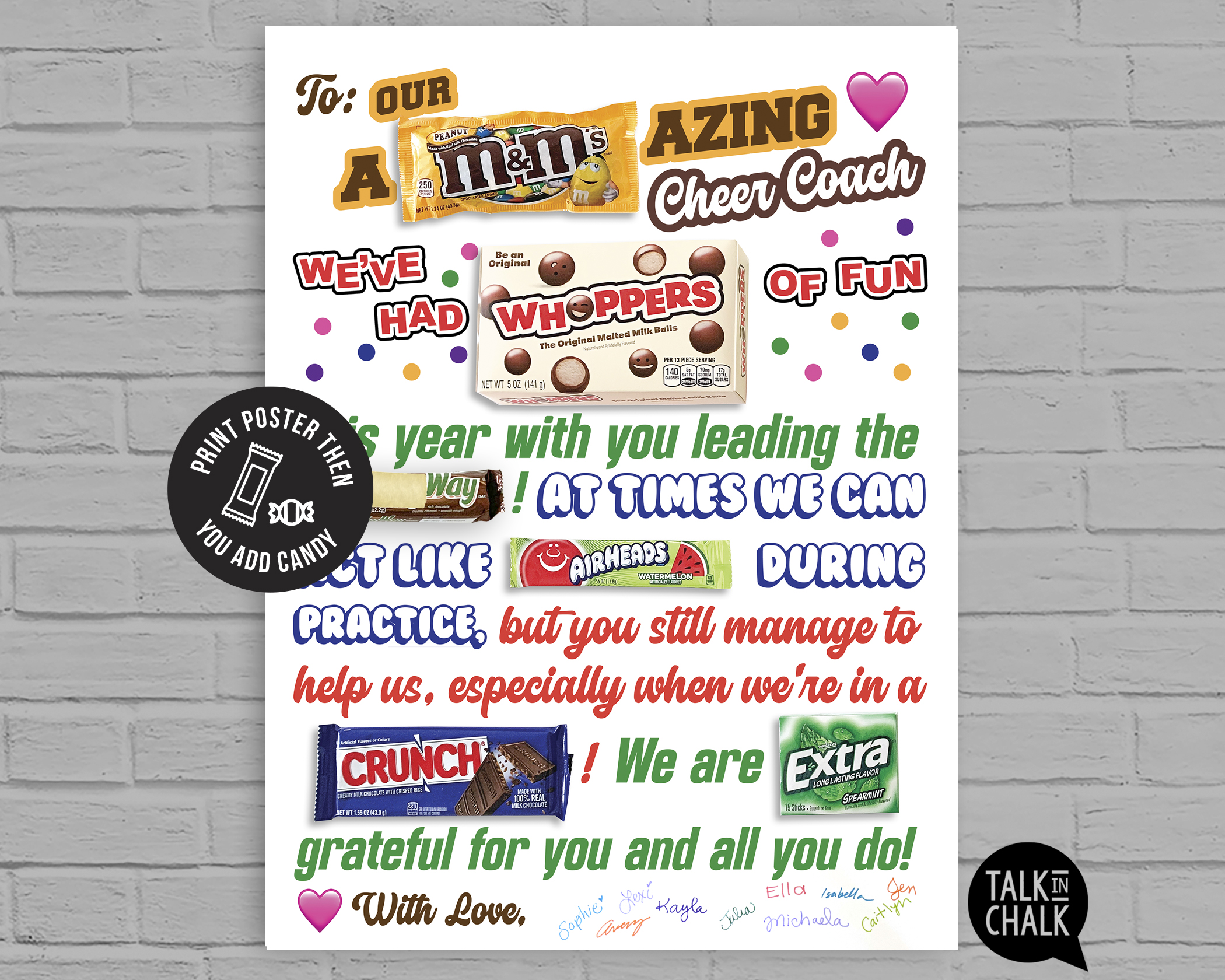 Cheer Coach Candy Appreciation Poster – Printable Coach's Gift | End of Season Candy Gram Sign | Thank You Gift for Cheer Coach