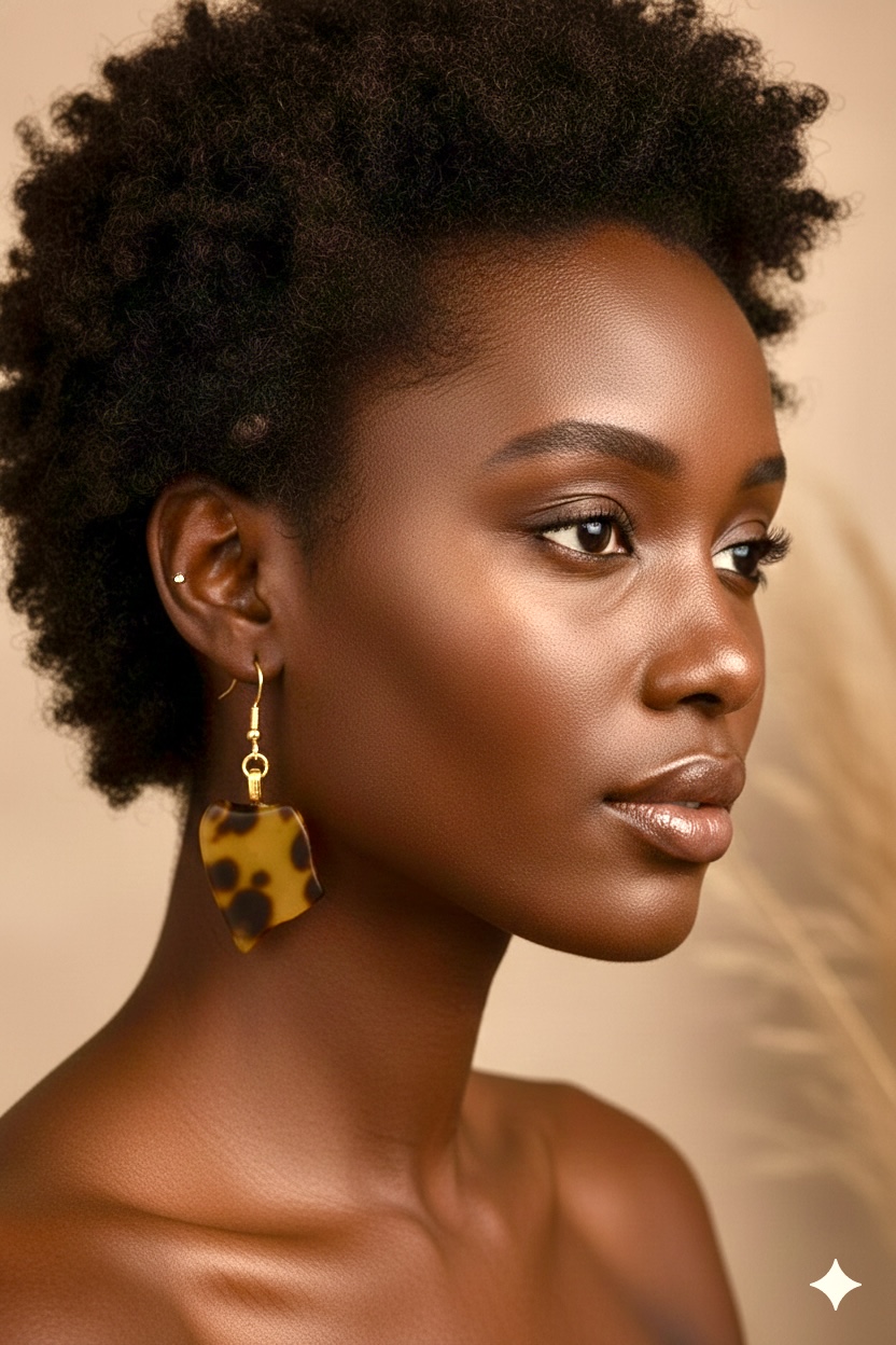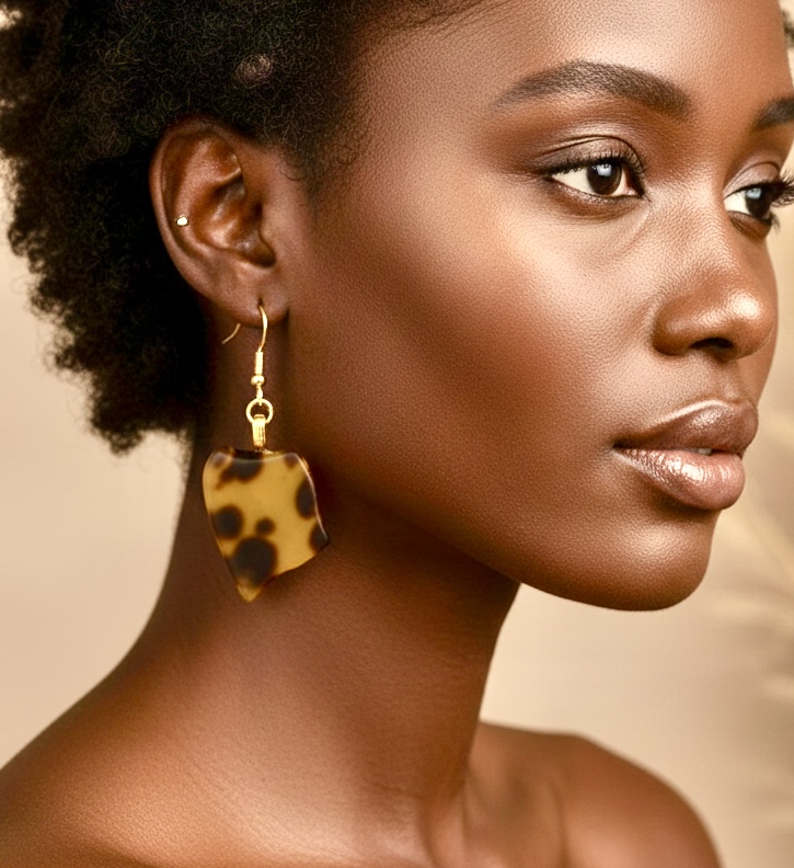 Elevate your jewelry collection with these Cheetah Sea Glass drop earrings. Blending organic shapes with timeless patterns, these earrings are designed for the woman who loves a mix of modern edge and classic elegance.