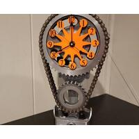 Chevy Orange big block wall clock. Made with Timing Set from 70s Chevy Engines. Made by clock9nine