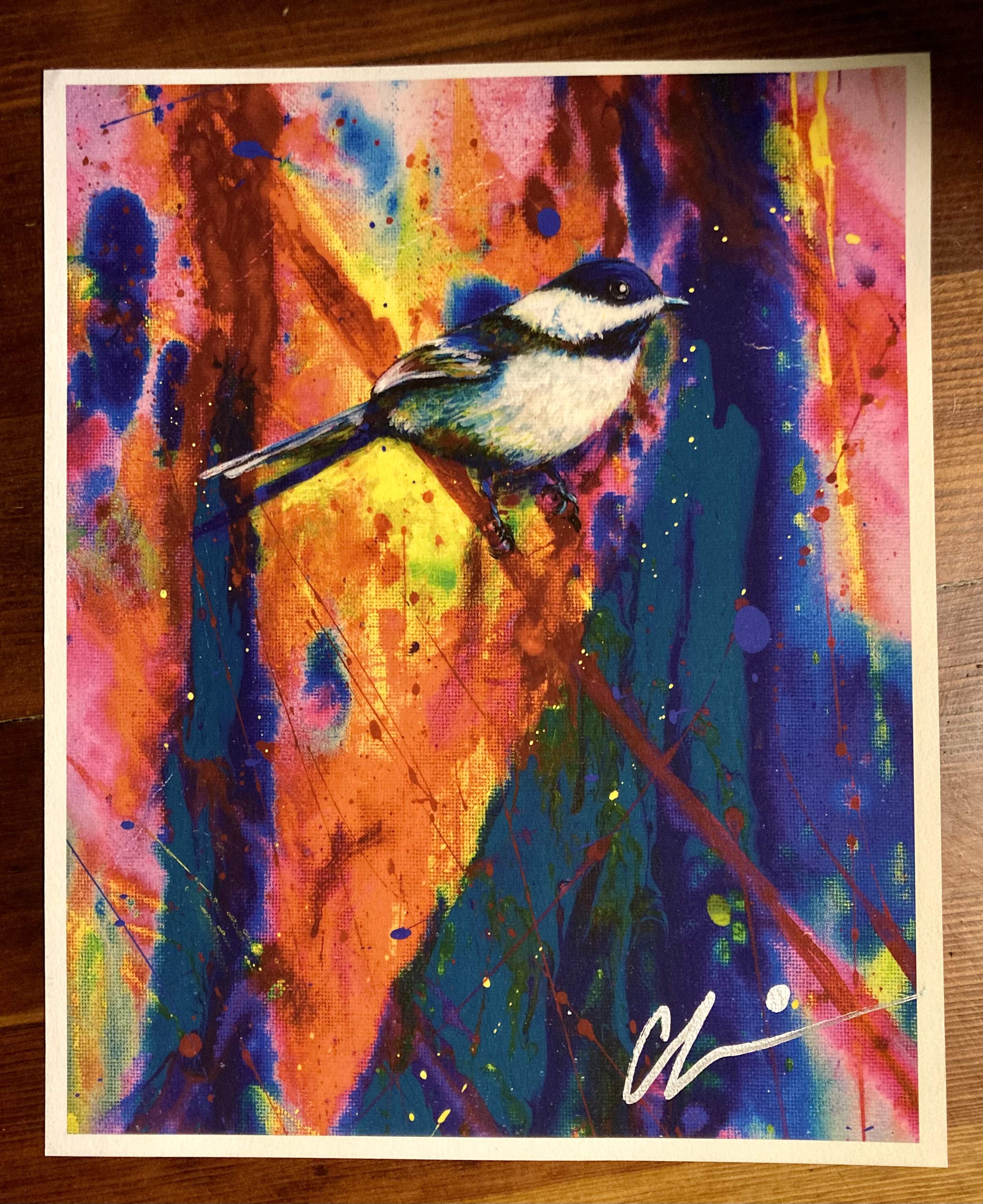 “Painted Perch” is a signed and numbered limited edition of 100 giclée print on watercolor paper. Image size is 9” x 12” with a 1/2” white border surrounding it.