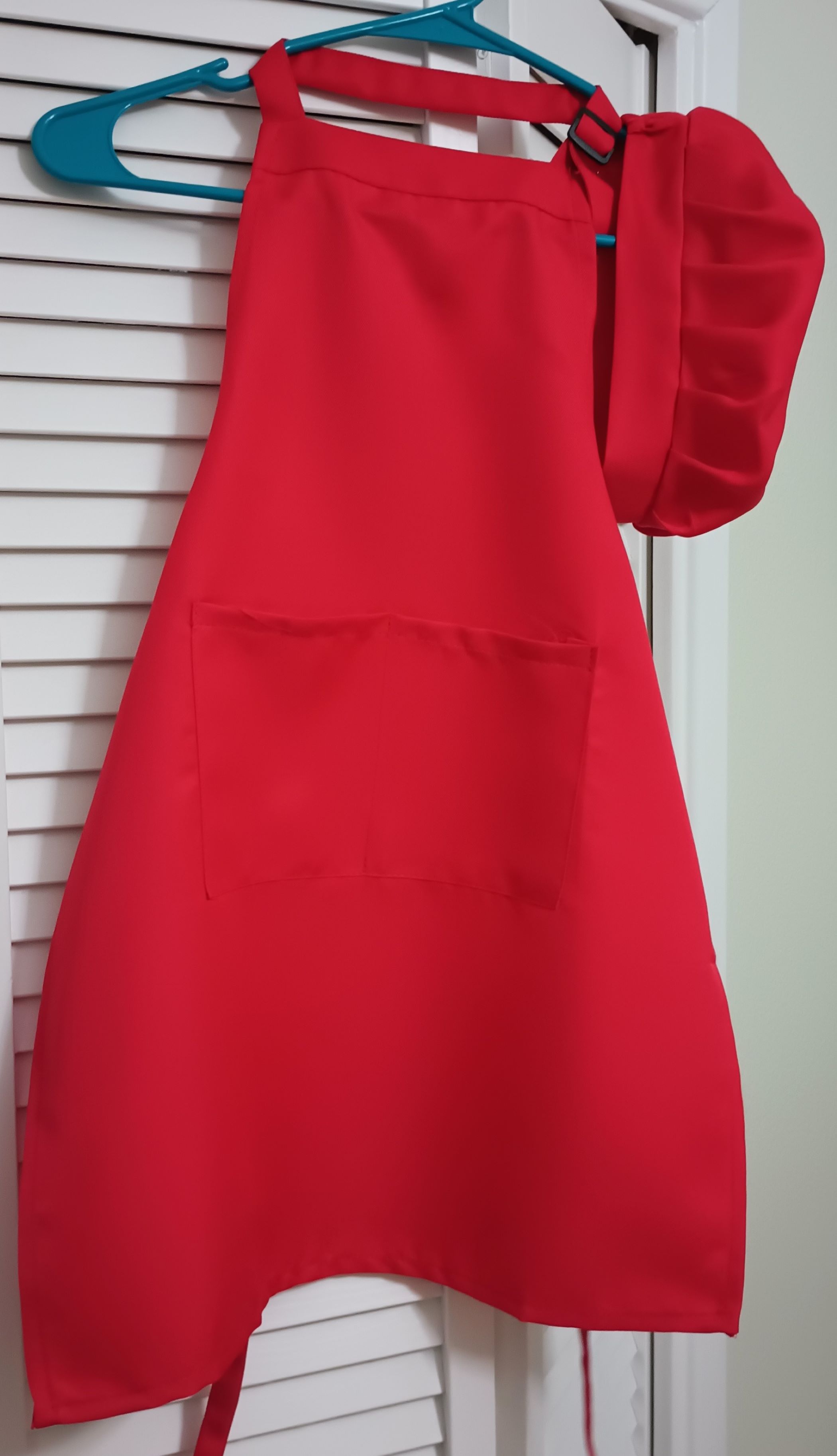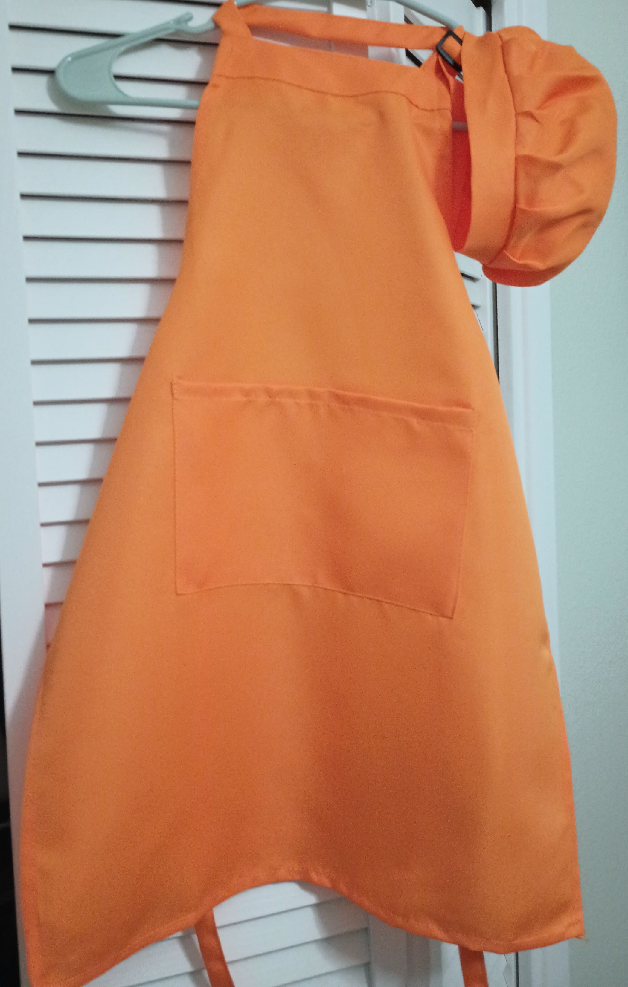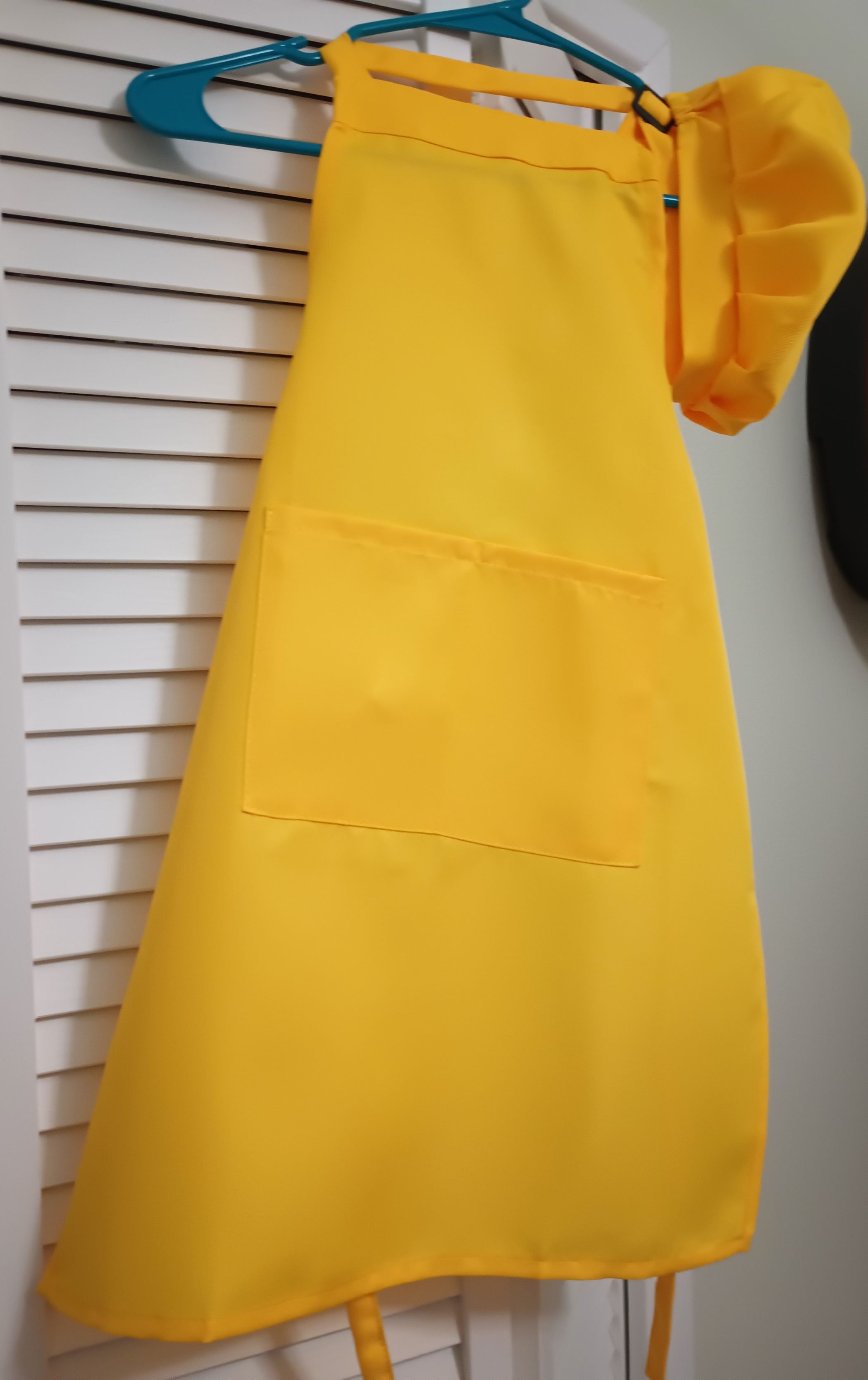 These nylon aprons come with a matching hat, and can be personalized with embroidery of a child's name.