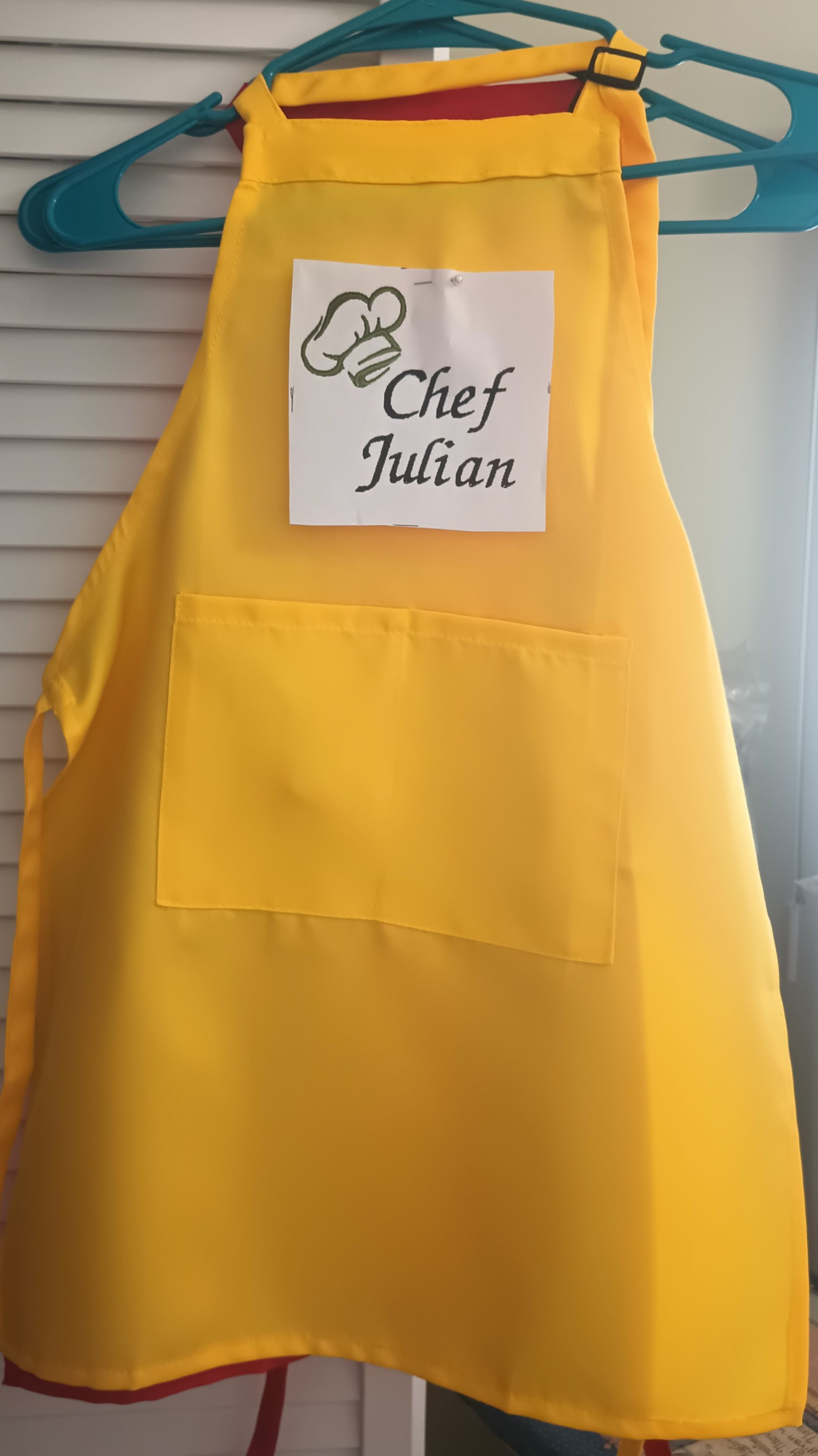 Be sure to comment with the child's name, being sure to spell correctly, as this is what will be stitched on the apron.