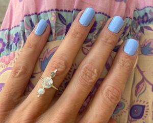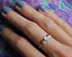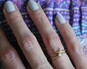 Crescent moon ring, opal ring - moon ring set, birthstone rin...