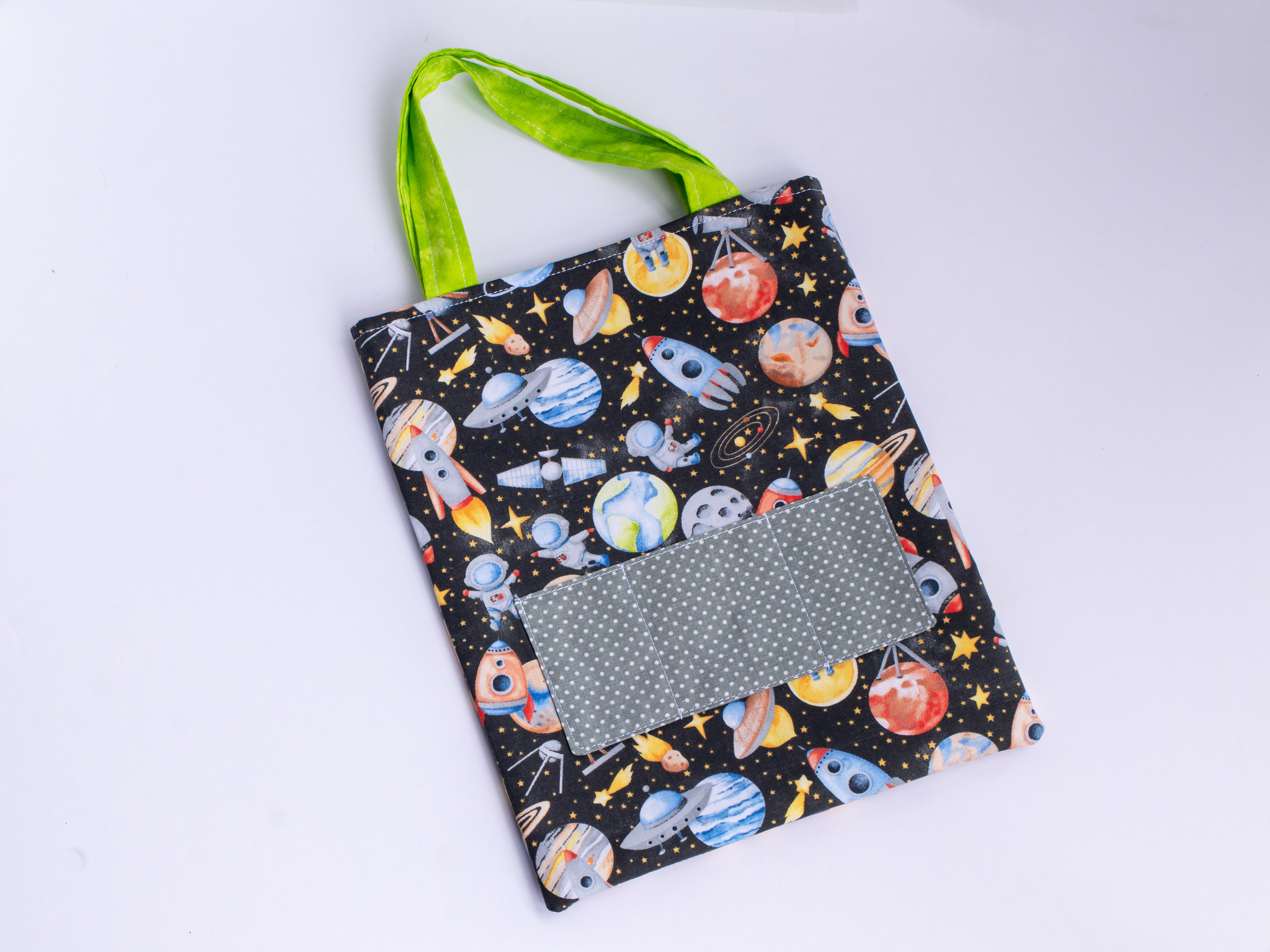 These kids sized Fabric Padded Tote bags are the perfect for small and big kids on the go who like to take their favorite items with them such as their Tablets, Coloring books, crayons colored pencils, books to read, cars, small games etc. Perfect to take to the restaurants, libraries, car trips, grandma's, friends, you name it.