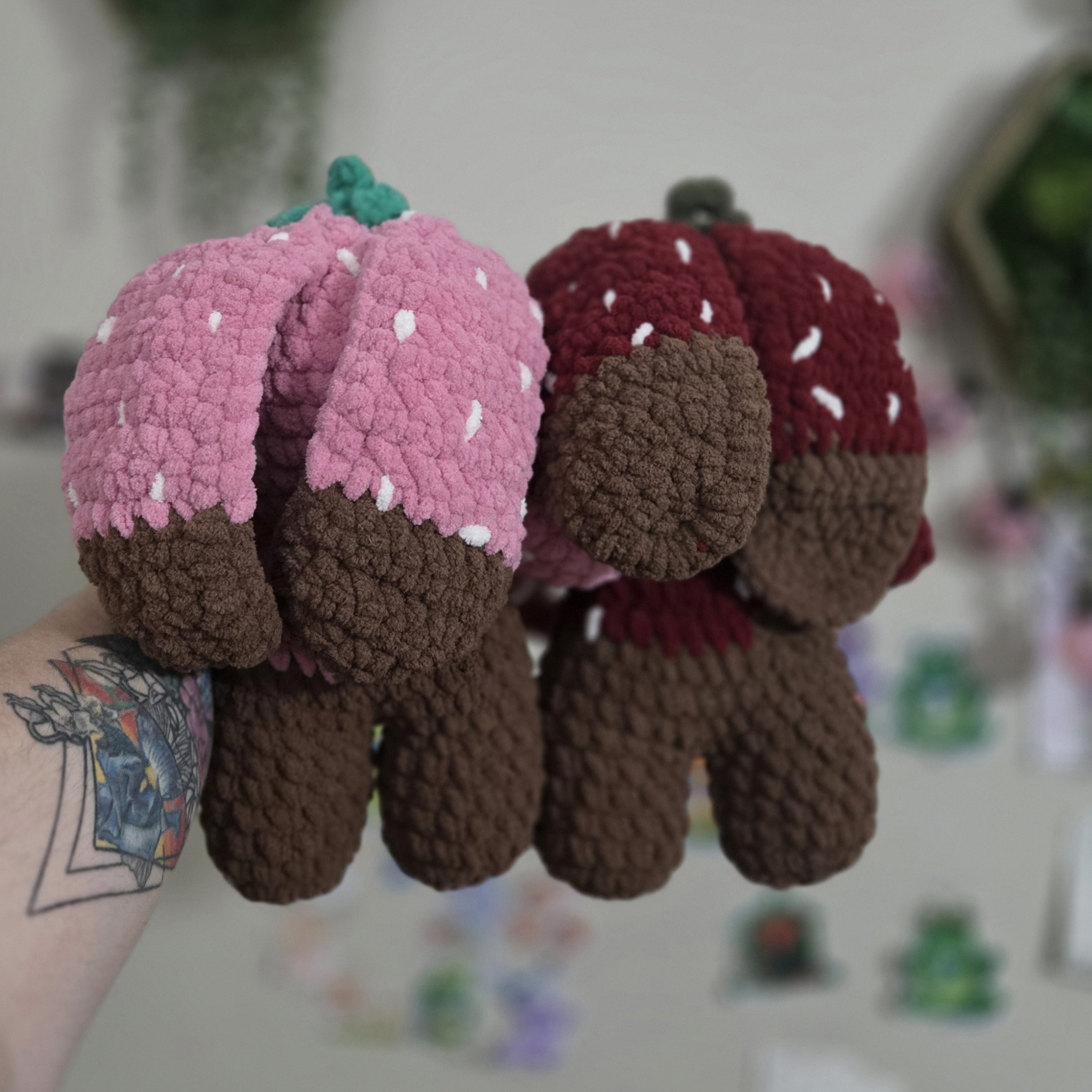 Handmade crochet plushy. made from size 6 blanket yarn, with poly fil. safety eyes to ensure durability. embroidered eyes can be done upon request. <3 washer and dryer safe: suggested item to be put into an established load for both washing and drying.