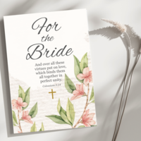 Our cards are more than ink on paper — they’re a voice for what your heart wants to say. This faith-filled design features delicate watercolor greenery, intertwined wedding rings, and a subtle cross, reminding the bride and groom that they’re not walking alone. It’s the perfect keepsake to tuck into a wedding album or Bible for years to come.