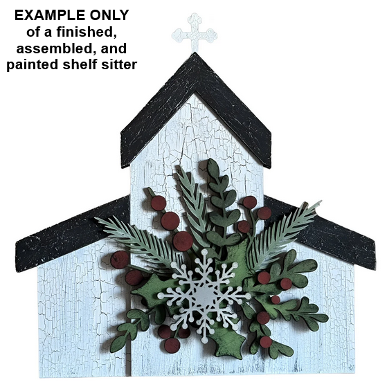 This is a Christmas church DIY (Do It Yourself) wood shelf sitter craft paint kit. The pieces are laser cut on 1/8" inch thick draftboard. It DOES stand up on its own. Glue NOT included. This is NOT a finished and completed shelf sitter. You assemble it, glue it together, and paint it yourself.