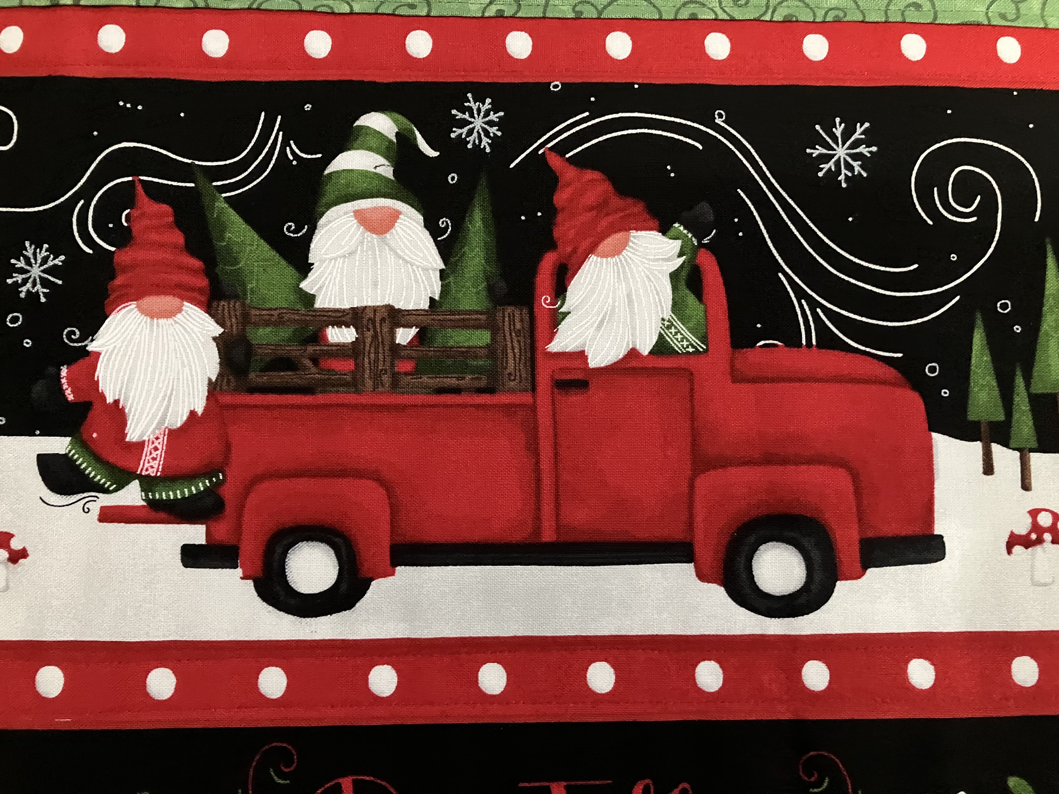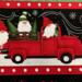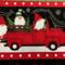 Bearing presents and candy canes, these little bearded guys are off on a Christmas roadtrip in their vintage red truck.