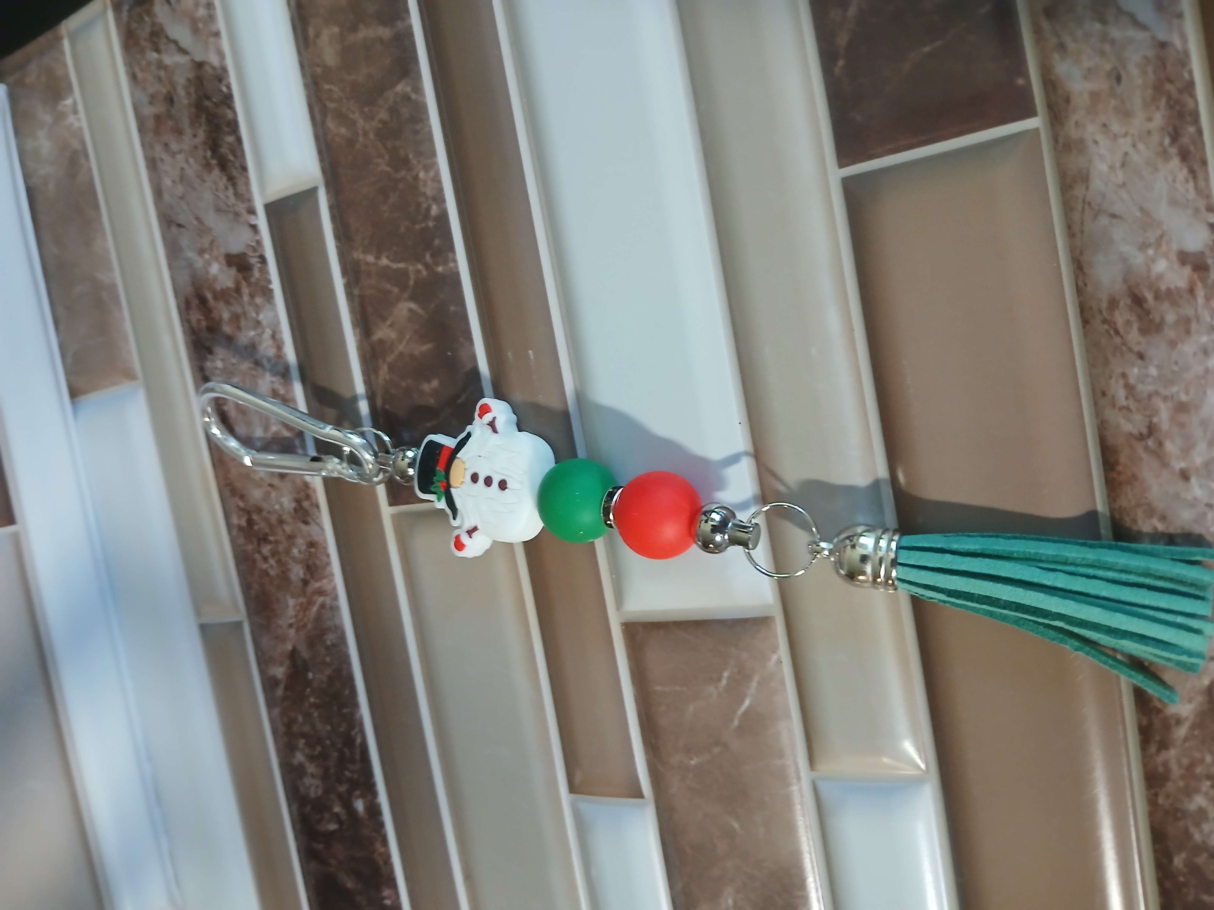 Everyone likes Christmas but do you like gnomes if you do here's a cute snowman gnome key chain/bag tag with a green and read beads and a green tassel you may want to use it year round
