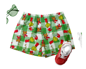 Our Christmas Green Plaid Boxer Style Shorts are great for getting the Christmas spirit and unwrapping gifts. These Christmas Green Plaid Boxer Style Shorts will be a hit for your little ones (or even for an older child who wants to feel extra Christmassy) and are sure to be their favorite. Made from 100% cotton, sewn front fly and a 1 inch elastic waistband for closure.