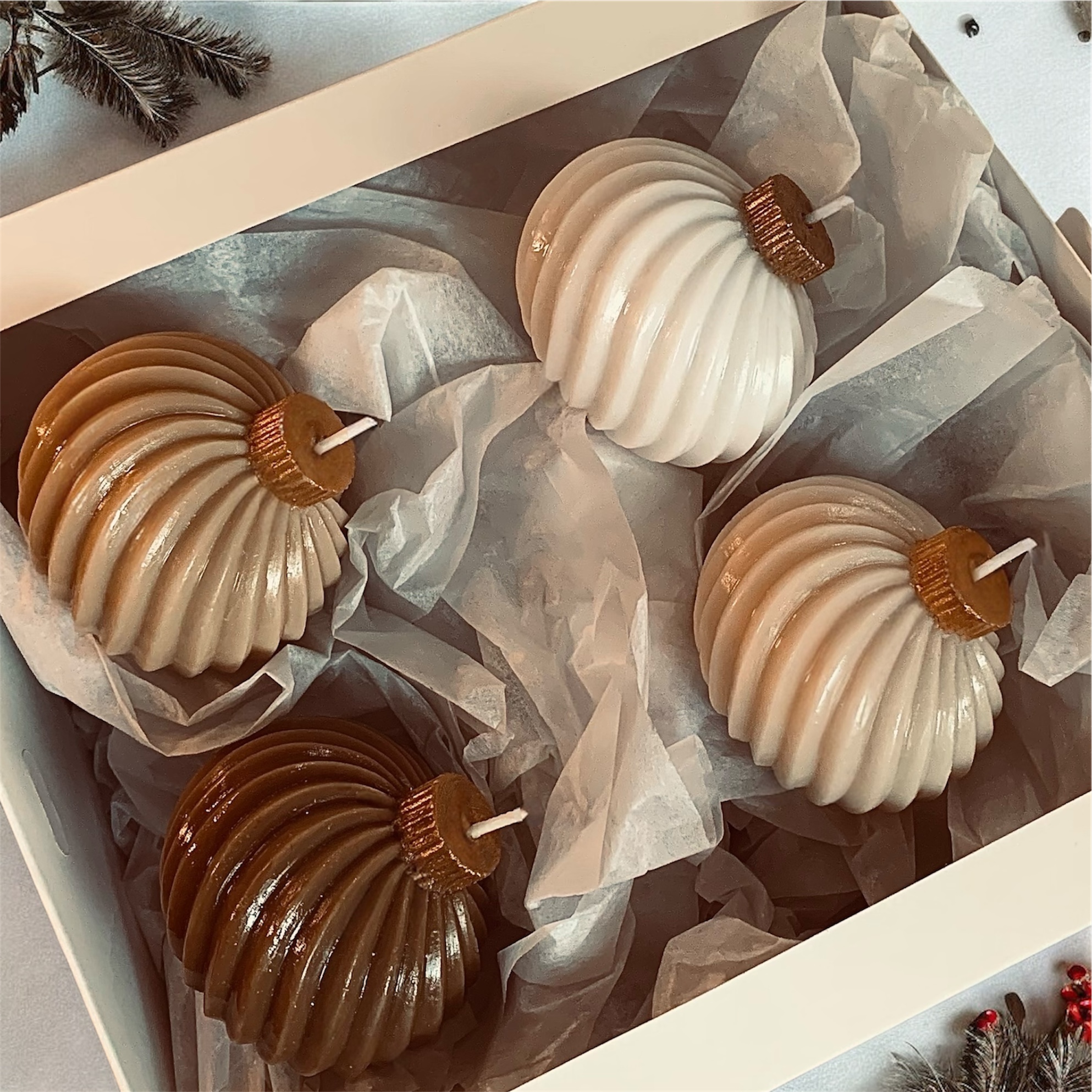 The set includes four beautiful neutral tones — white, ivory bisque, beige, and chocolate brown — that look just as lovely unlit as they do glowing. They’re individually wrapped and packaged in a gift-ready box, tied with an oversized brown satin ribbon.