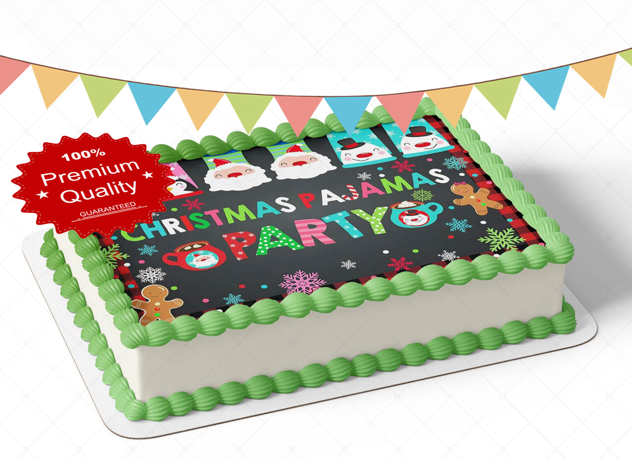 Christmas Pajama Party Snowflake Santa Winter Edible Image Themed Edible Birthday Party Cake Topper Sheet Edible Sticker Decal