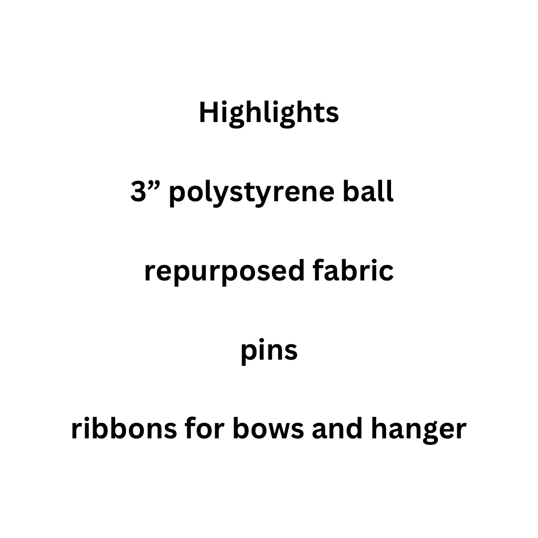 Highlights 3" polystyrene ball repurposed fabric pins ribbons for bows and hangers