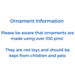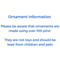Ornaments are also made with pins and a polystyrene balls. Because of the pins, ornaments are not toys and should be kept away from children and pets.