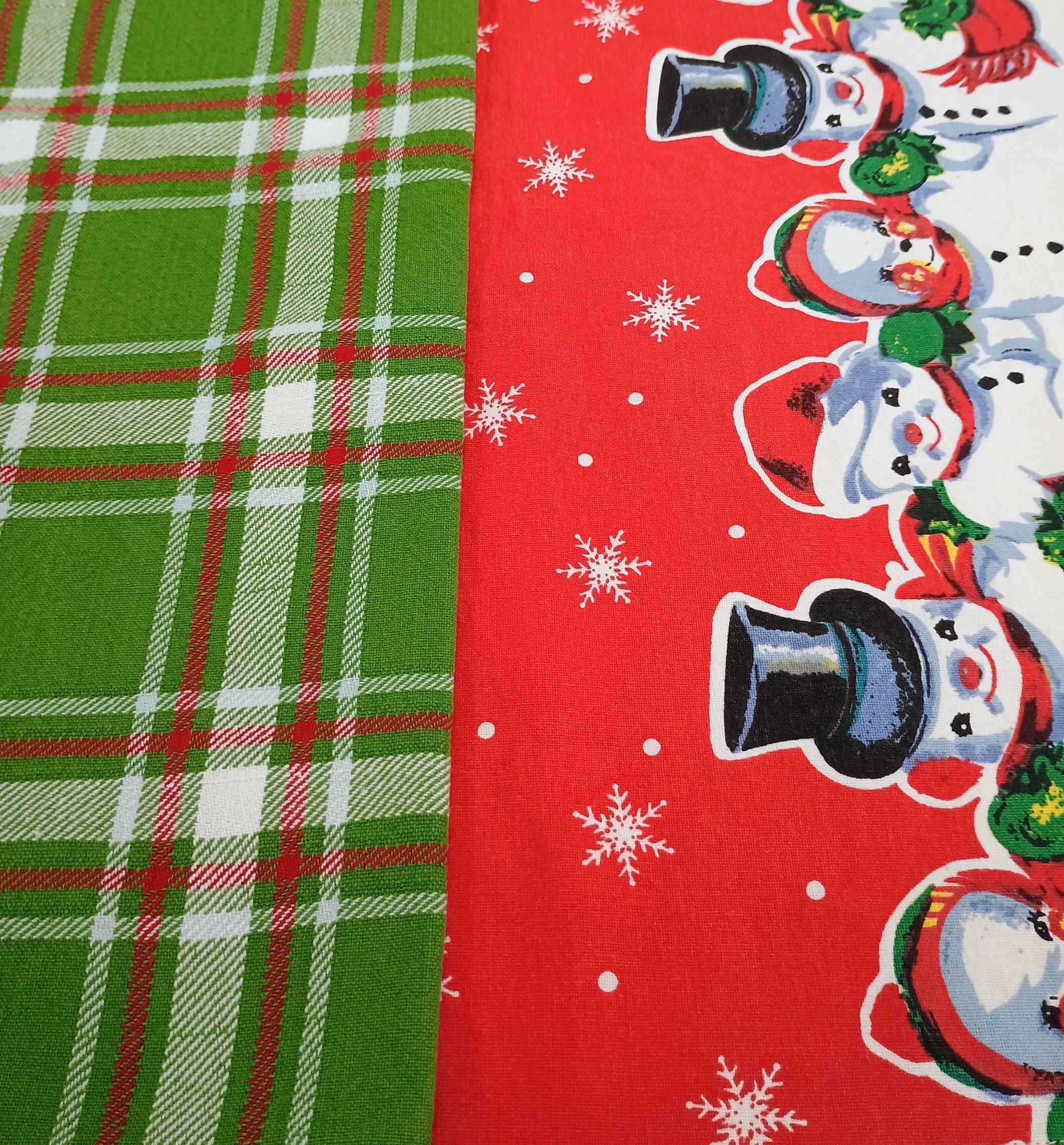 This is cotton toweling in a great snowman family print down the edges. The middle has a great tossed snowflakes on a red field. This print is just the cutest.