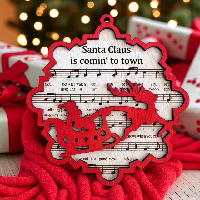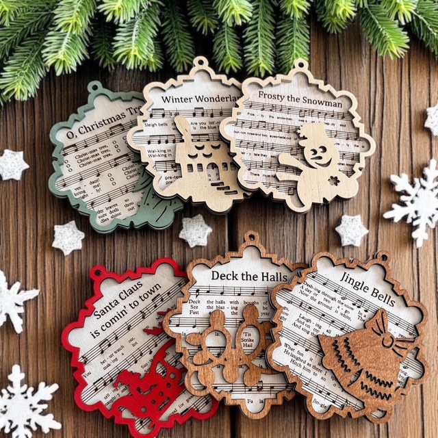These layered Christmas ornaments beautifully combine music and art, featuring a favorite Christmas song engraved on the base layer and a detailed laser-cut design on top that captures the spirit of the tune. Each ornament is crafted from quality wood, creating a warm, dimensional keepsake that celebrates the joy and meaning of the season. Perfect for gifting or adding a heartfelt touch to your holiday décor.