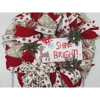 Welcome the holiday season with this festive Christmas stocking wreath! This handmade wreath combines rustic charm with vibrant Christmas cheer, featuring a stunning mix of red and gold bows, burlap ribbon, and a charming centerpiece depicting a beautifully decorated stocking. Each element is carefully crafted to bring elegance and warmth to your front door, fireplace, or wall décor.