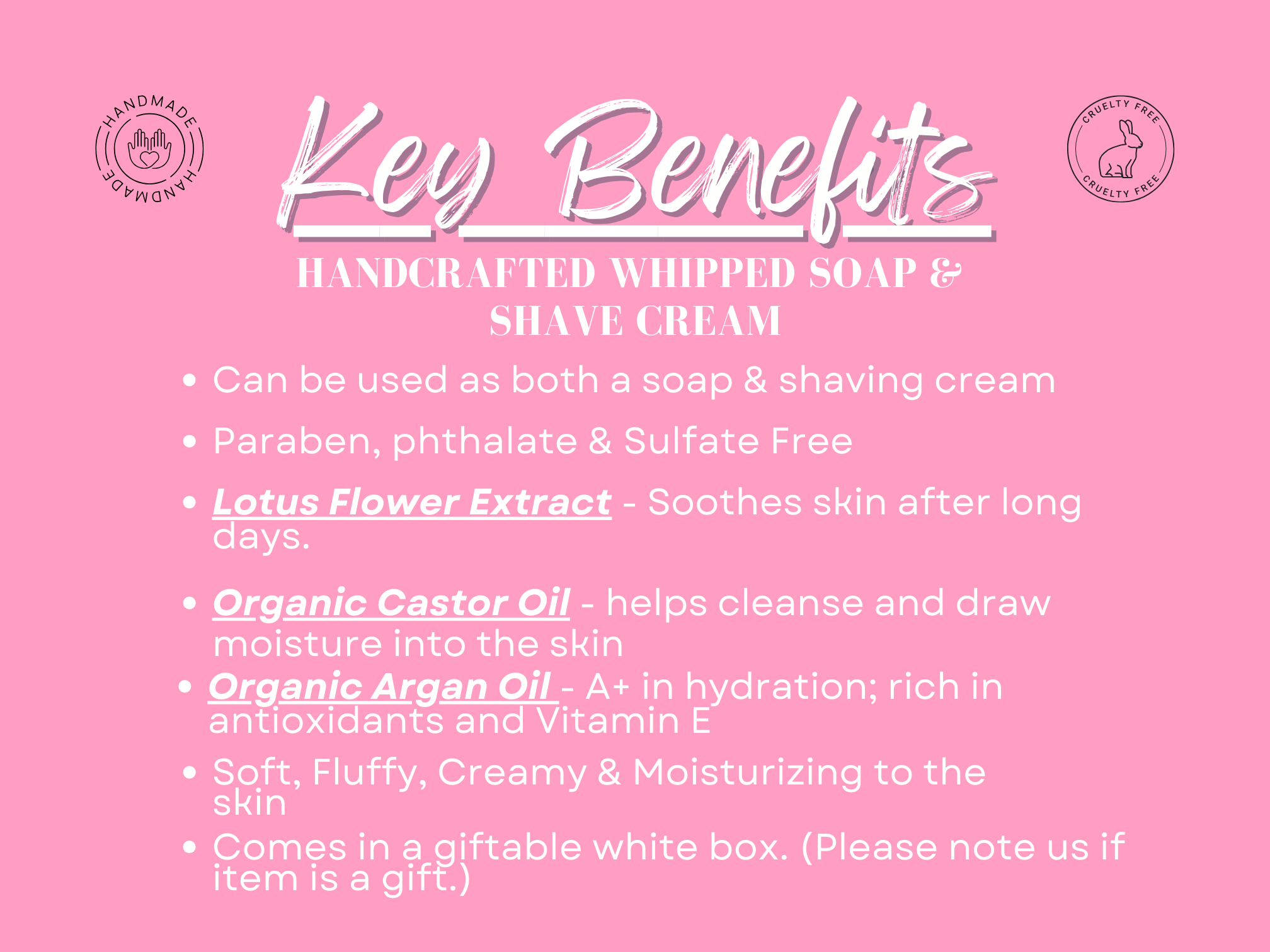 A rich, creamy lather that gently cleanses and doubles as a luxe shave cream. Handmade from scratch with skin-nourishing ingredients to leave you soft, smooth, and pampered.