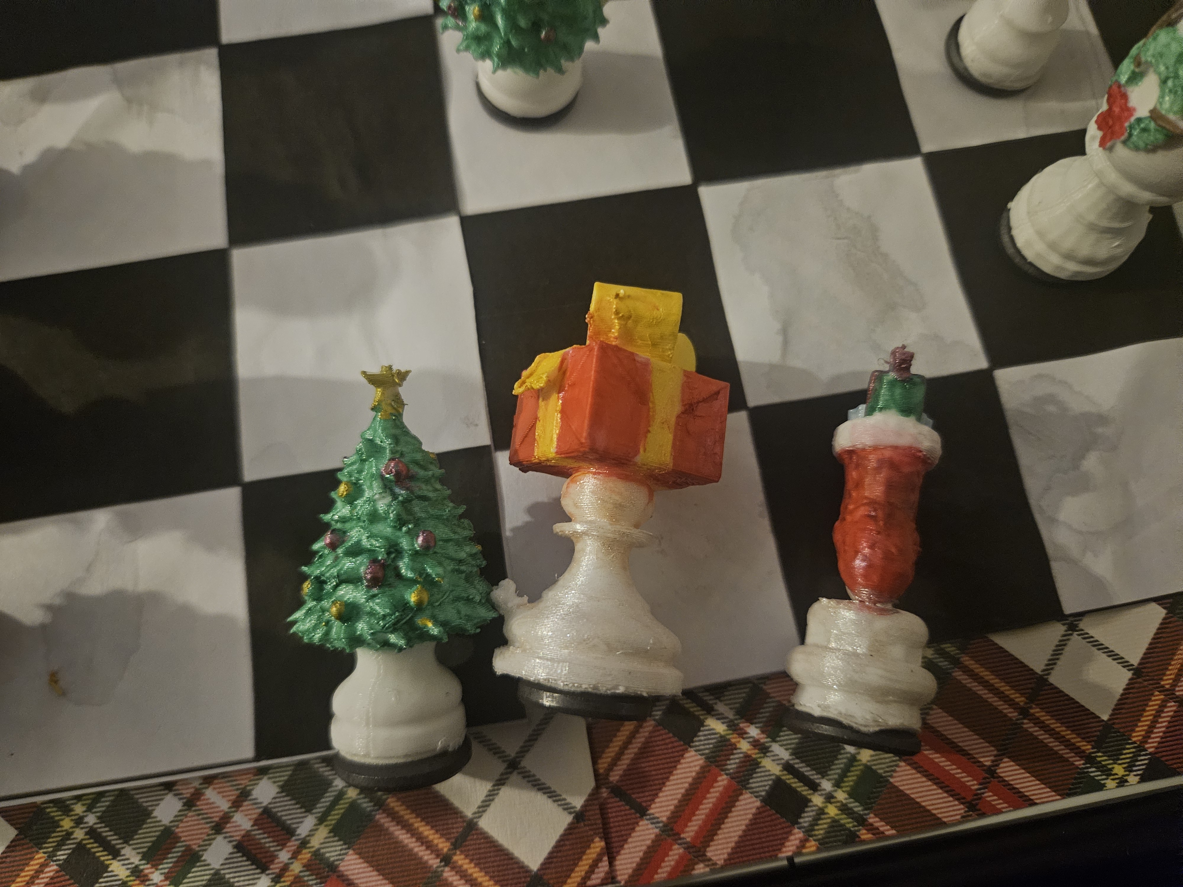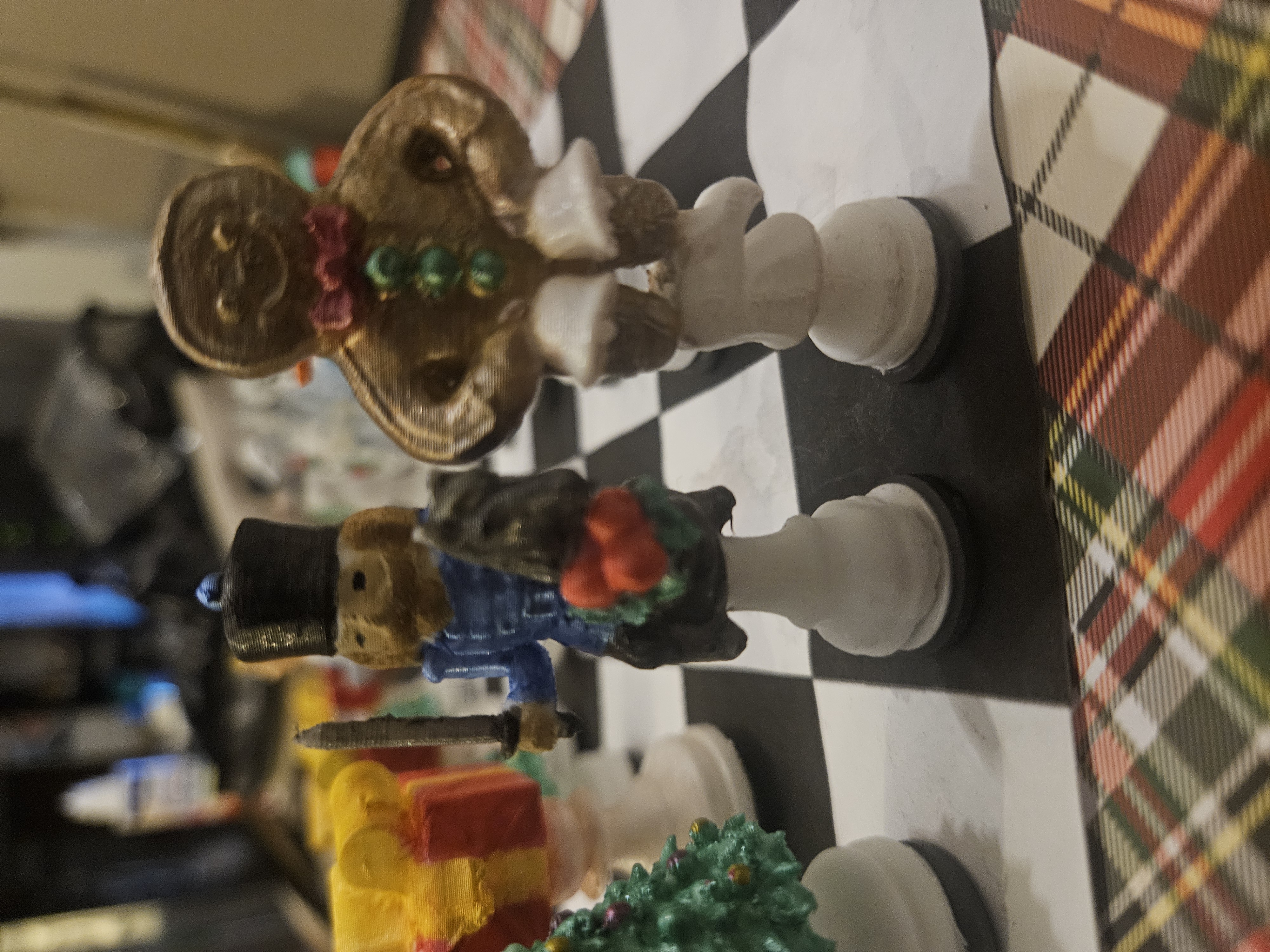 Bishop and Knight: Snowman/Polar Bear, Nutcracker/Gingerbread Man, Angel/Reindeer and Sleigh