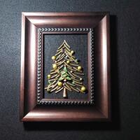 Vintage Style Decorated Christmas tree Mid-century Dark Brown Frame Bronze Christmas Tree | Christmas Decor in a Frame Small Christmas Tree