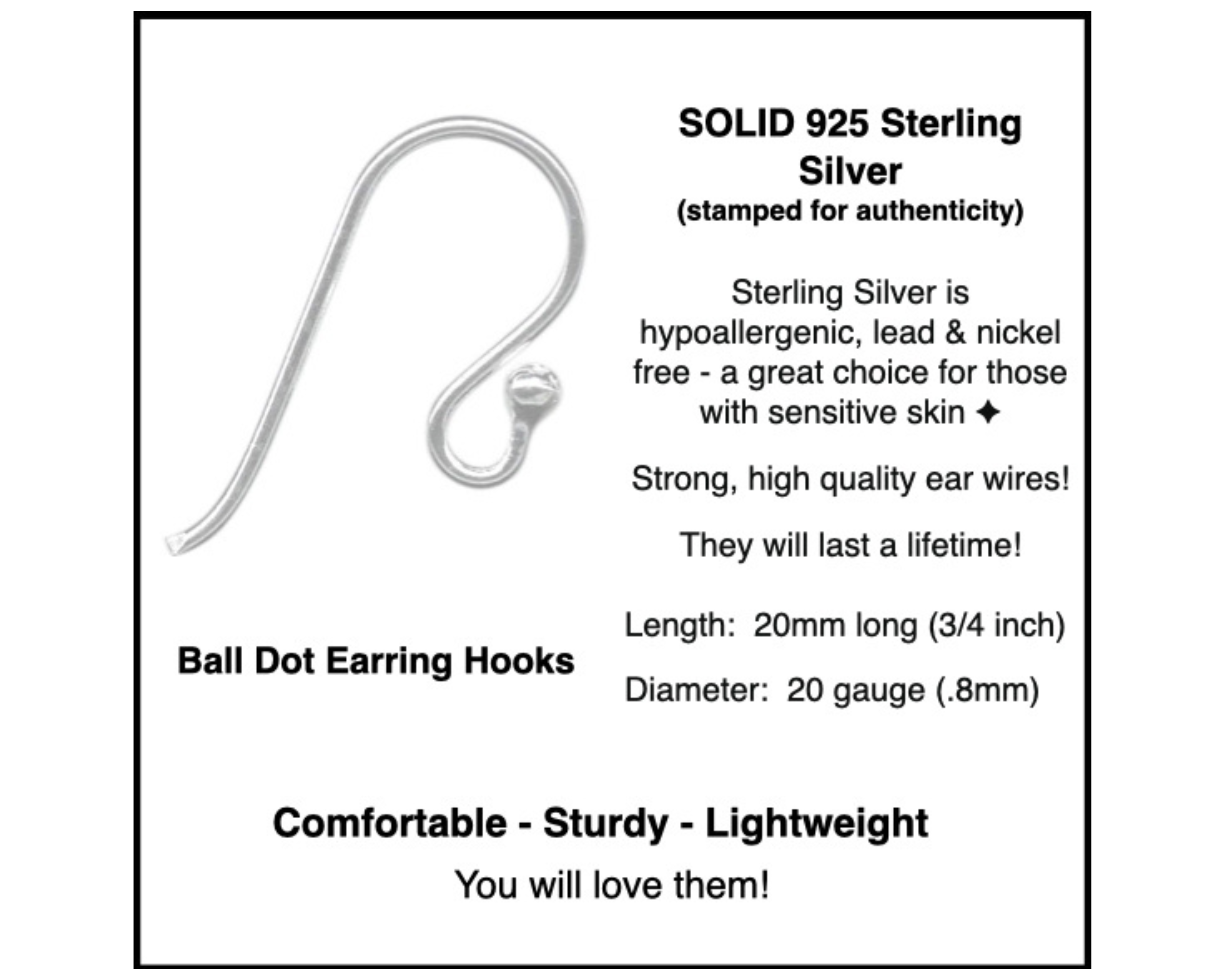 SOLID 925 Sterling Silver (stamped for authenticity) Ball Dot Earring Hooks.