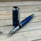 The body is paired with durable, high-quality metal components in bright chrome finish, which beautifully complements the cool, rich tones of the resin. This pen is designed with a postable cap that screws securely onto the back end while writing, providing a comfortable, balanced feel.