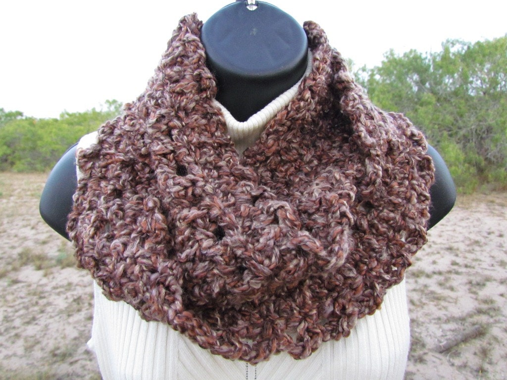 This is an original infinity scarf that is smaller. I designed my own pattern and made it by hand with rare Country Loom Loops and Threads Yarn. It's an extra special and unique find gift!