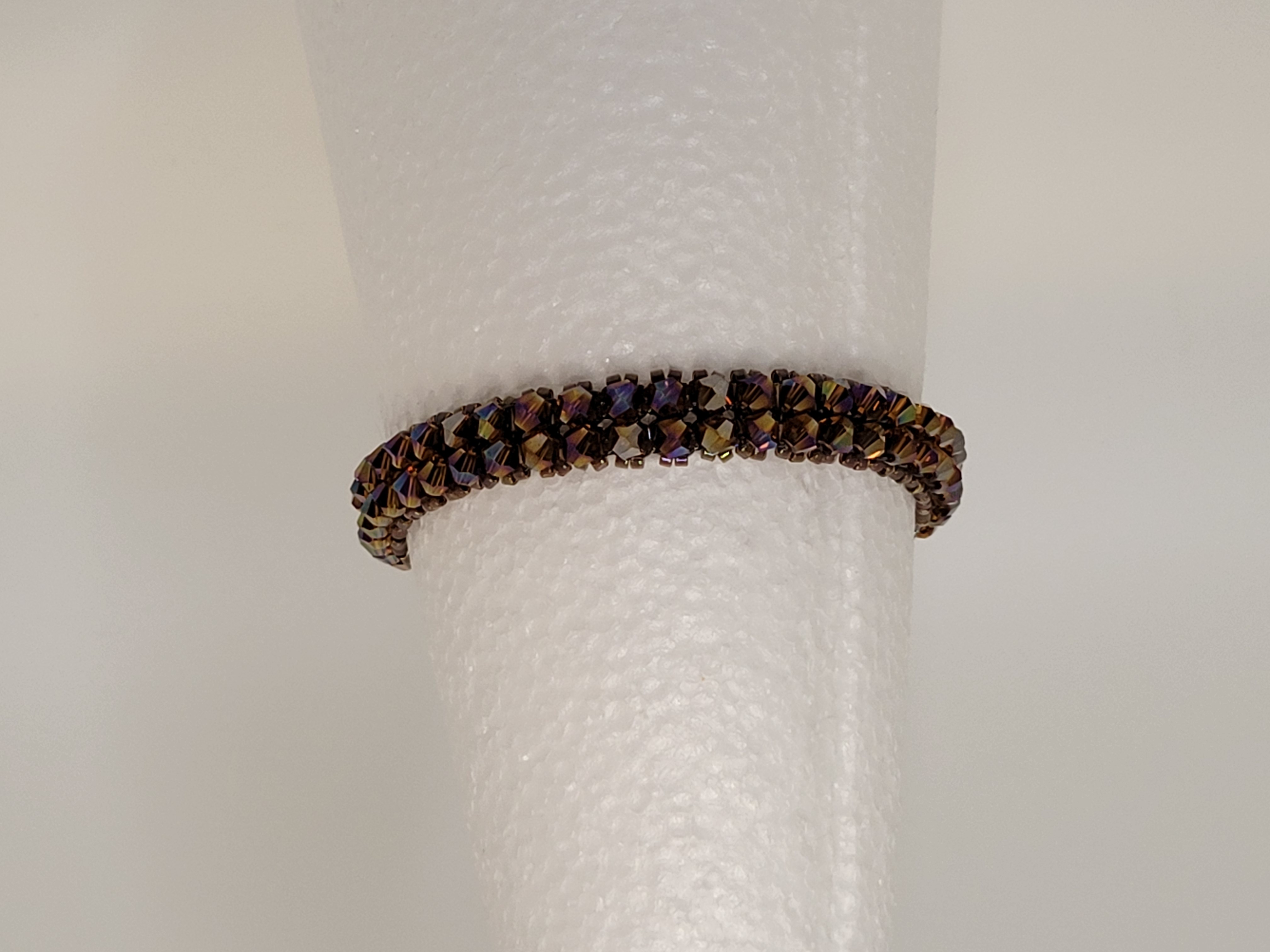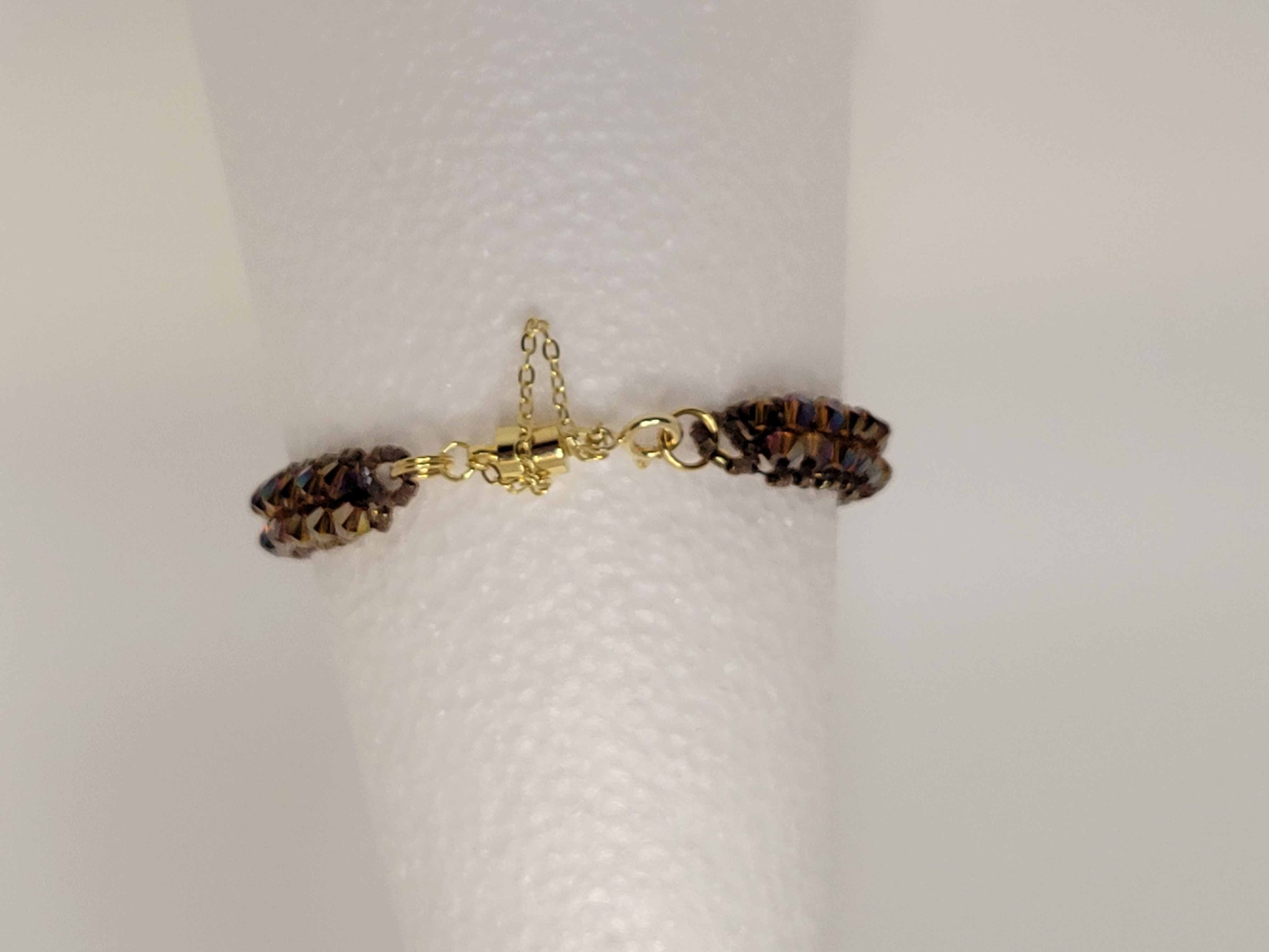 The Cinnamon Stick Beaded Bracelet glows with the rich warmth of spiced bronze tones and a hint of shimmer. Faceted crystal beads reflect the light beautifully, shifting from deep amber to golden highlights with every movement.