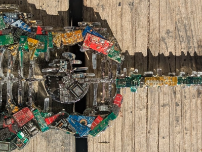 Strum a little techno-magic into your life with this handmade resin guitar wall art, crafted from recycled motherboards, phone guts, computer chips, and all the little tech gremlins that once powered someone’s terrible decisions on the internet.