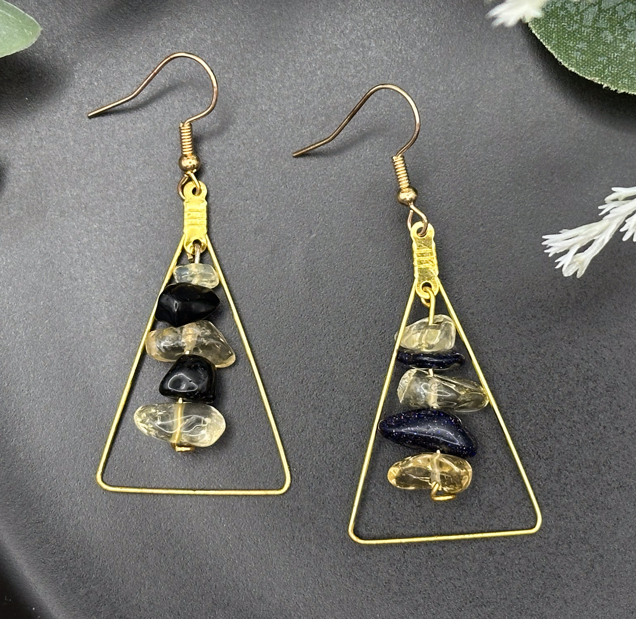 Add a touch of elegance to your look with these stunning citrine quartz and obsidian drop earrings! Each pair features natural gemstones that shimmer beautifully in the light, making them the perfect accessory for any occasion.