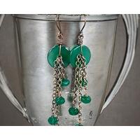 I made these earrings by first setting 5 mm Citrine gemstones in the 14K/20 Gold Filled settings. Next I made the earring jackets with Onyx beads, Gold Vermeil spacers, Citrine Rondelles and Gold Filled beads, finishing with a wire wrapped loop. Then I made the jacket looks out of 20 gauge Gold Filled with and attached the Onxy dangles to the jacket wires.