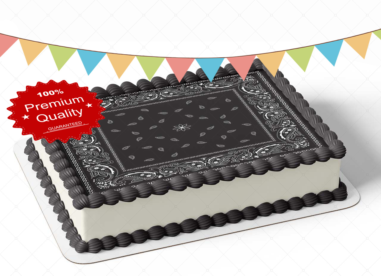 Classic Bandana Black Edible Image Themed Edible Birthday Party Cake Topper Sheet Edible Sticker Decal