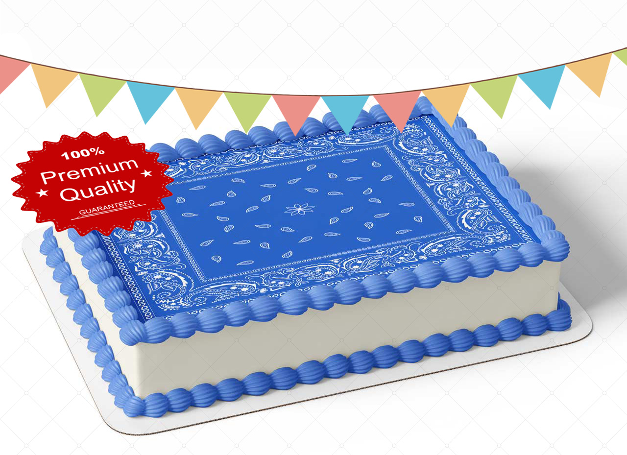 Classic Bandana Blue Edible Image Themed Edible Birthday Party Cake Topper Sheet Edible Sticker Decal