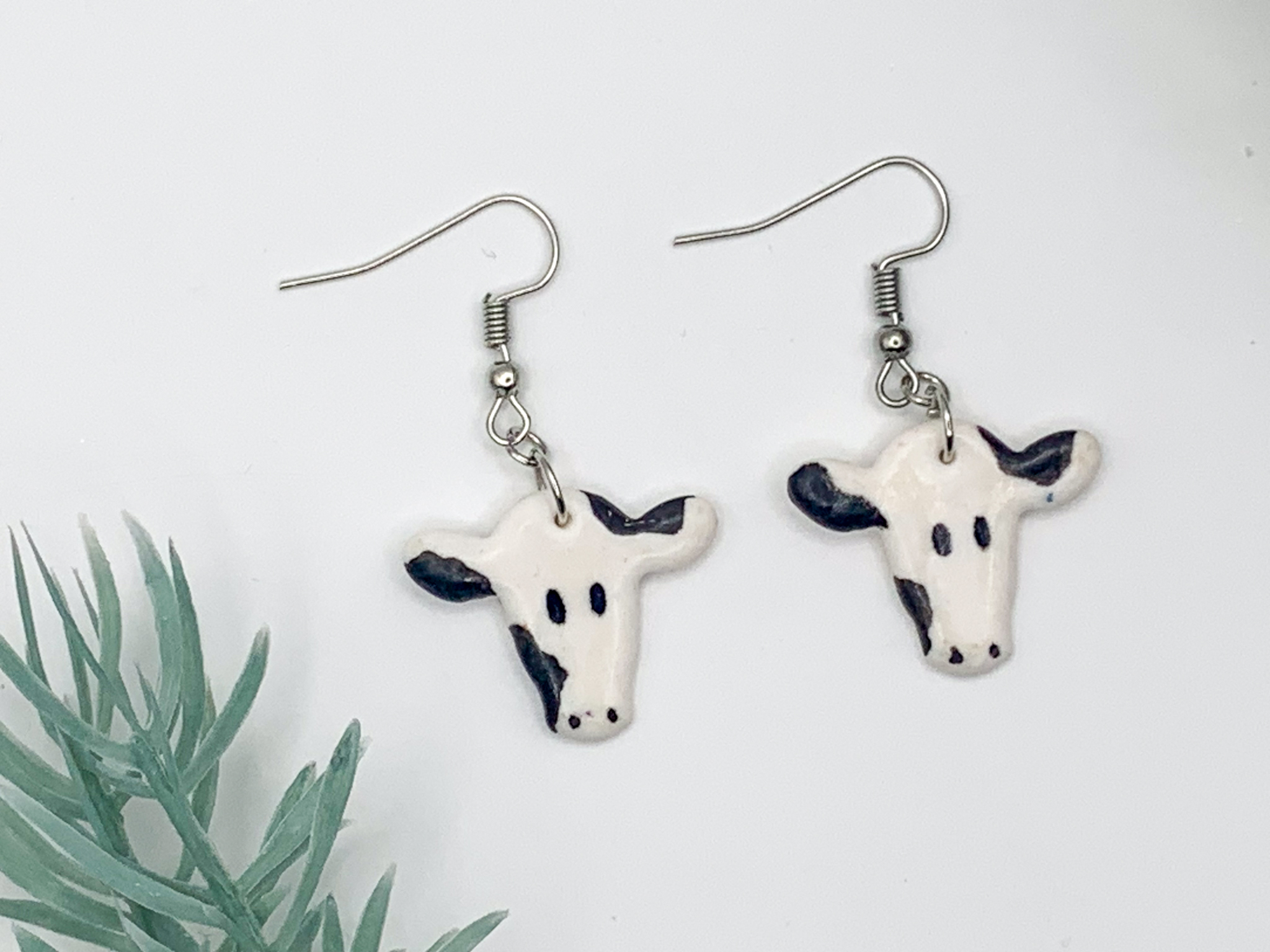 Country charm at its finest! These cow head earrings feature a black-and-white pattern for a simple yet eye-catching design.