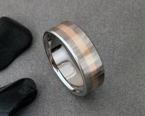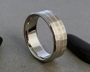 Truly 100% Handmade Titanium Rings. Every ring is uniquely crafted from start to finish in our studio nestled in the foothills of California's beautiful Sierra Nevada mountains.We use only solid metals to craft our rings. The titanium is 6al-4v grade 5 (aerospace grade). The rings are inlayed with solid 18k gold (yellow, white, or rose), solid sterling silver, or solid platinum ruthenium. Nothing is plated, and the inlays will last the life of the ring.If you need your ring a bit quicker than our quoted lead time, please feel free to contact us, and we'll do our best to make it happen. We are always willing to work with time constraints.