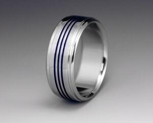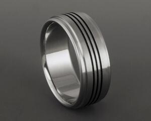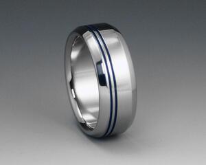 Truly 100% Handmade Titanium Rings. Every ring is uniquely crafted from start to finish in our studio nestled in the foothills of California's beautiful Sierra Nevada mountains.We use only solid metals to craft our rings. The titanium is 6al-4v grade 5 (aerospace grade). The rings are inlayed with solid 18k gold (yellow, white, or rose), solid sterling silver, or solid platinum ruthenium. Nothing is plated, and the inlays will last the life of the ring.If you need your ring a bit quicker than our quoted lead time, please feel free to contact us, and we'll do our best to make it happen. We are always willing to work with time constraints.