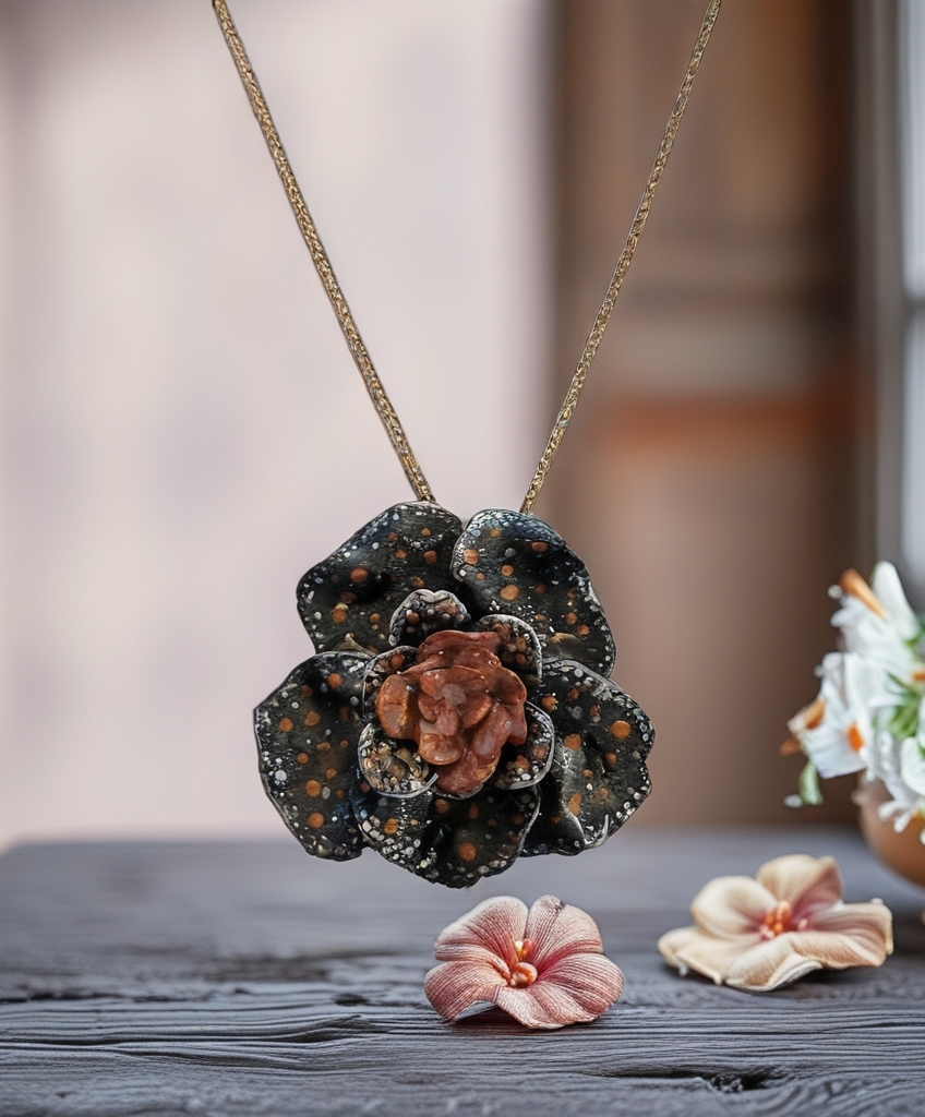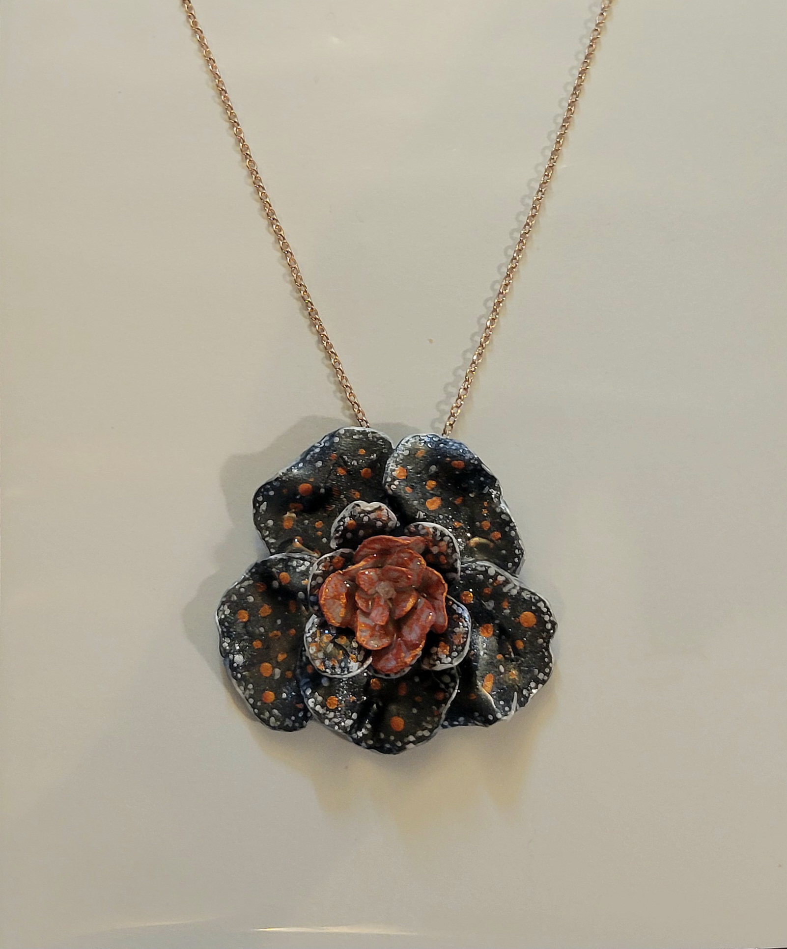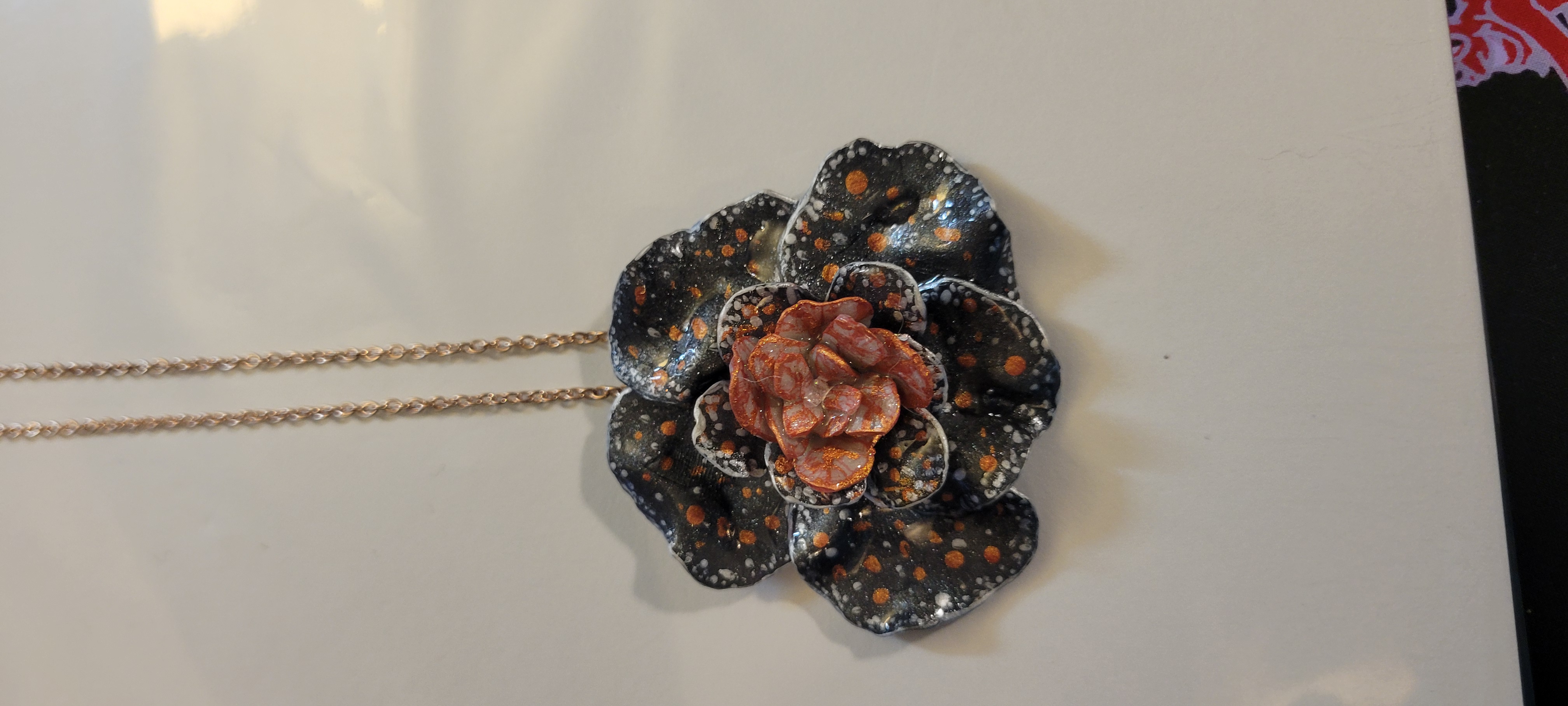 Sculpted the flower from polymer clay and meticulously painted this pendant to ensure the necklace would be a truly one-of-a-kind statement piece!!