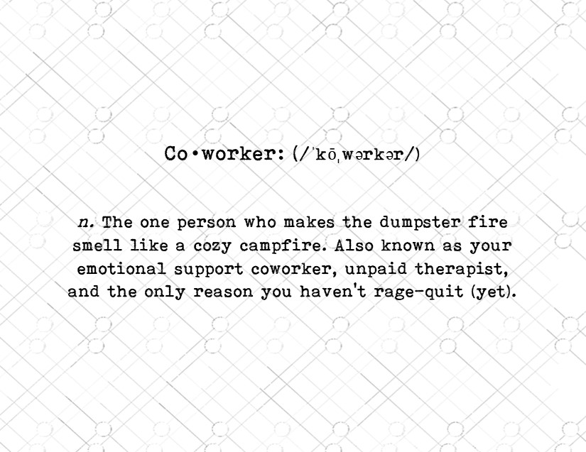 You know the one. The co-worker who sends memes instead of productivity, who hears your Slack scream before HR does, and who somehow makes surviving your toxic workplace feel like a team-building exercise.
