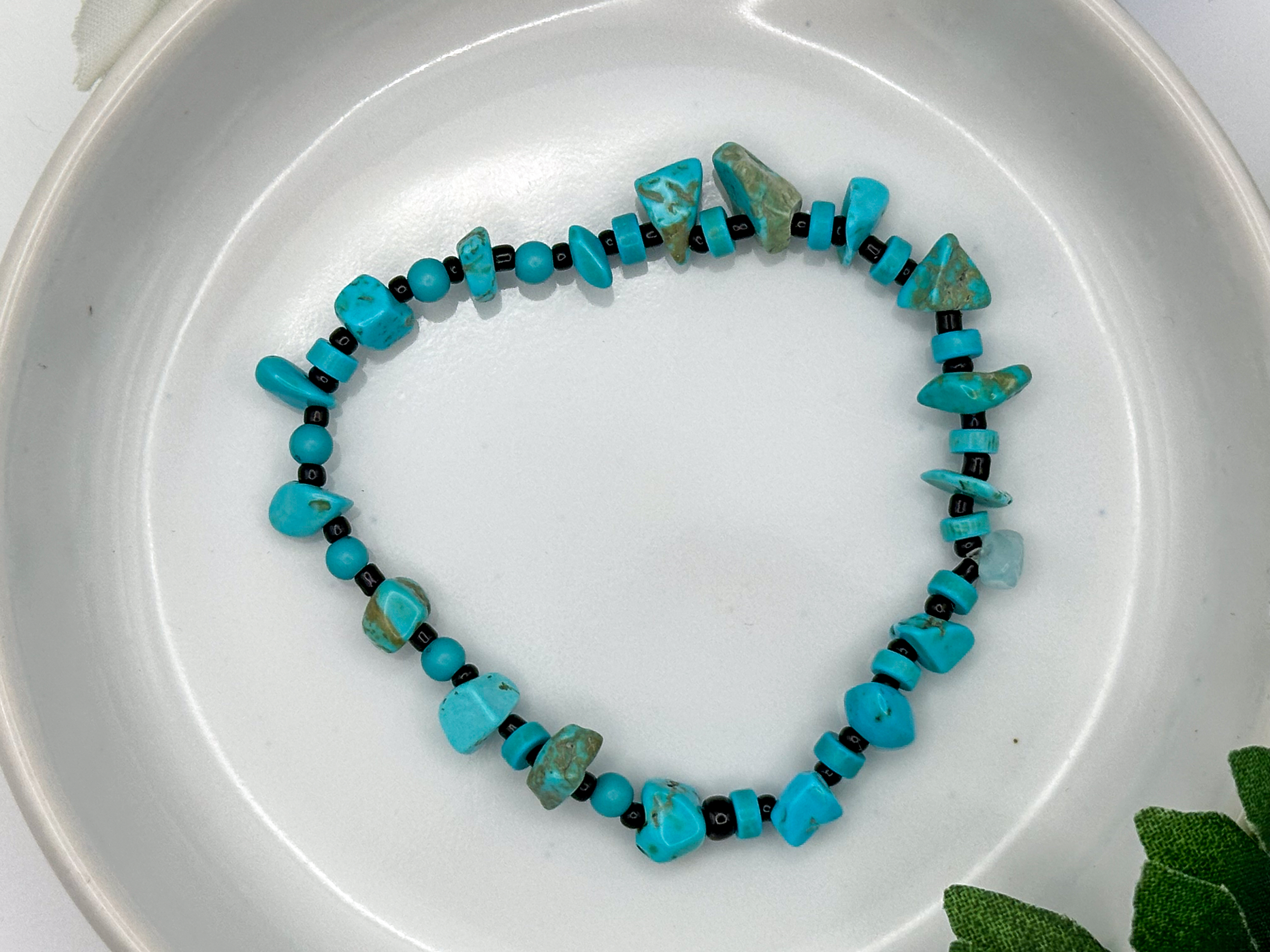 Coastal Scatter Bracelet – Raw Turquoise Chips with Graphic Black Spacers