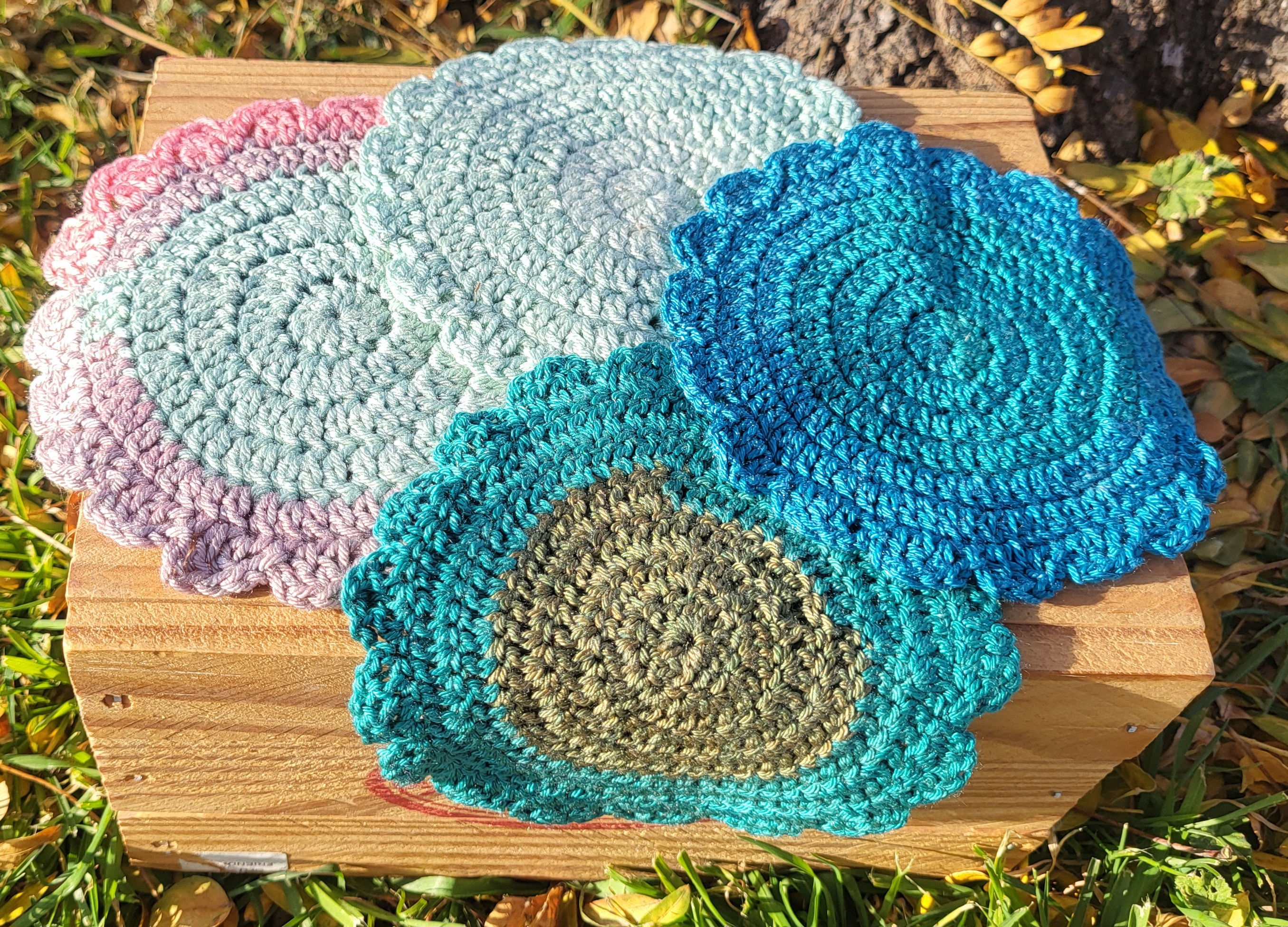 Protect your tables with these 100% cotton coasters! Each set comes with 4 coasters in coordinating pastel colors. This set is full of blues, browns, and pinks