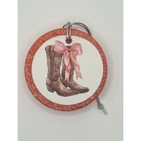 Scent your car with our Patriotic Cow Car Freshie, scented in Pineapple Dream Whip. Simply hang it up and enjoy the refreshing fragrance. Perfect for any driver looking to eliminate any unwanted odors in their vehicle. Experience the benefits of a clean and inviting car with our Round Car Freshie.