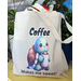 Made from sturdy cotton canvas, tote measures 15 inches x 15 inches with a 23 inch handle. They are very sturdy and works well for many things!