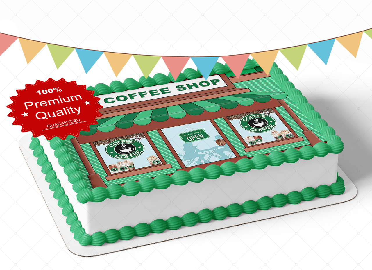 Coffee Shop Edible Image Themed Edible Birthday Party Cake Topper Sheet Edible Sticker Decal