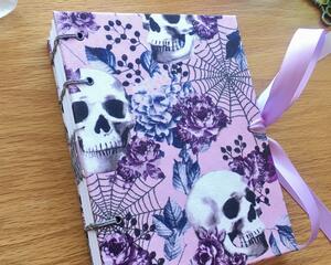 Halloween Ornament. Pink Skull with Black and Dark Pink Sequi...
