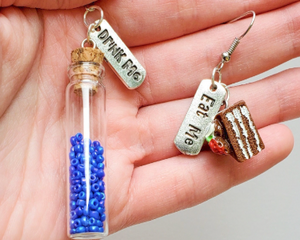 Handmade Eat Me, Drink Me mismatched novelty earrings inspire...