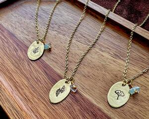 Bronze Fern Leaf Necklace with Pearls and Crystals