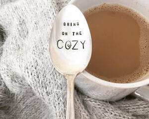 Bring on the Cozy - Hand Stamped Vintage Silver Spoon, coffe...