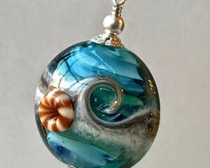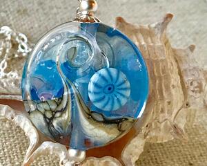 Sterling Silver Ocean Blue Wave Lampwork Necklace, Wave Ocean...